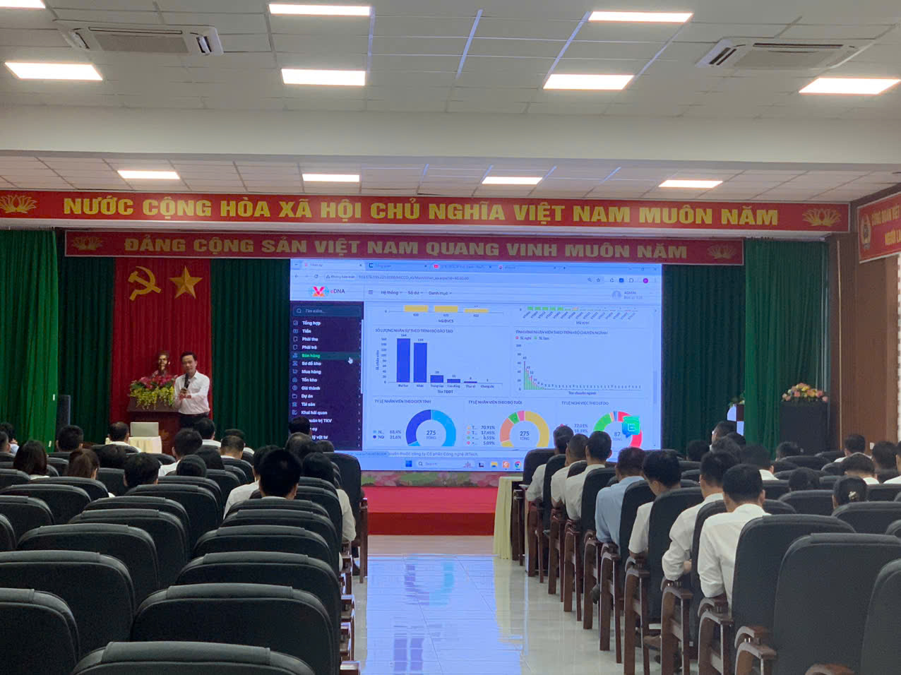 Tại hội thảo, với sự tham gia của các khách mời đến từ 02 Công ty công nghệ tiên phong cung cấp các giải pháp công nghệ ứng dụng chuyển đổi số Việt Nam là Công ty TNHH kỹ thuật công nghệ điện tự động Biển Đông (ESTEC) và Công ty Cổ phần Công nghệ IRTECH các chuyên gia đã tập trung trình bày về giải pháp ERP AI và các phân hệ trong hệ thống phần mềm ERP AI như: hệ thống quản trị nguồn nhân lực doanh nghiệp, quản trị sản xuất thông minh, quản lý tài sản, quản lý tồn kho, DASHBOARD…
