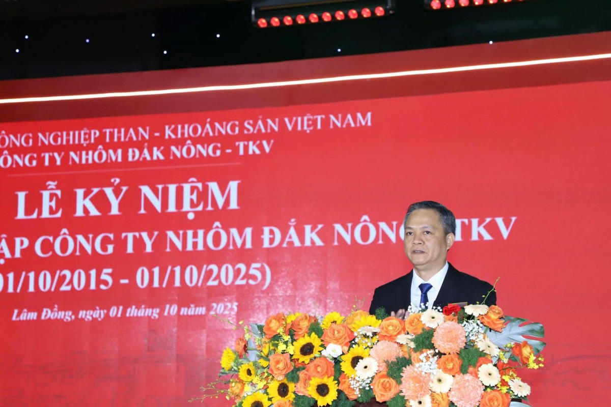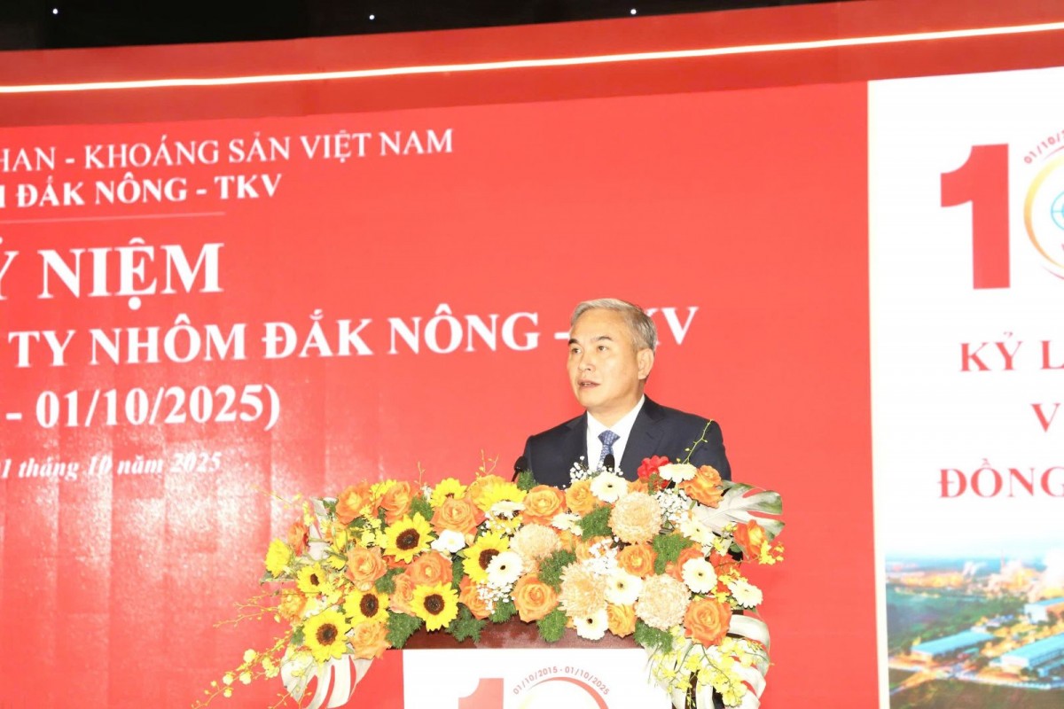 Phát biểu tại buổi lễ, đồng chí Lưu Văn Trung, Phó Bí thư Tỉnh ủy biểu dương và chúc mừng những thành tích mà Công ty Nhôm Đắk Nông – TKV đạt được trong chặng đường 10 năm qua. Đồng chí khẳng định, những kết quả này là minh chứng rõ nét cho việc cụ thể hóa chủ trương, định hướng lớn của Bộ Chính trị về phát triển ngành công nghiệp bô xít – alumin – nhôm, đồng thời góp phần thúc đẩy chuyển dịch cơ cấu kinh tế, tạo động lực quan trọng cho sự phát triển của địa phương.