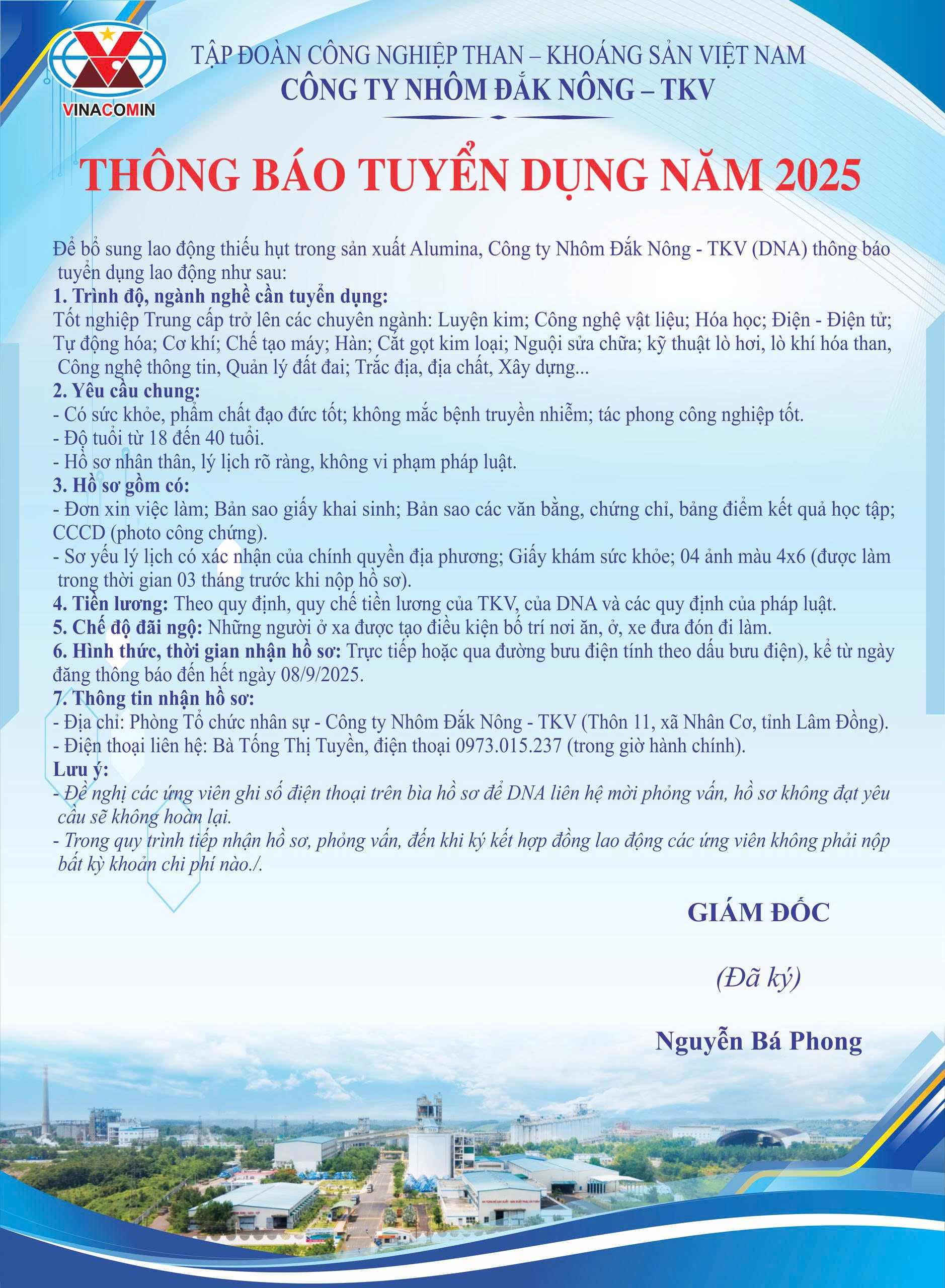 Tin TứcTiêu điểm 07:41 - 27/08/2025Công ty Nhôm Đắk Nông - TKVCông ty Nhôm Đắk Nông - TKV: Thông báo tuyển dụng năm 2025 07:41 - 27/08/2025Công ty Nhôm Đắk Nông - TKVChia sẻ: